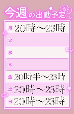 こんばんは🌙 今週の出勤予定です🗓️ EDGEとDollsを行き来しているため、 ご来店の際はお手数ですが、 お問い合わせくださいm(_ _)m その他の日で出勤希望日や 何かご不明点がございましたら、 わたし個人のLINEか インスタのDMから ご相談いただければ 予定調整等いたしますので よろしくお願いいたしますm(_ _)m 本日も23時まで 出勤しておりますので、 みなさまのご来店、 心よりお待ちしております🤖💙 名古屋のお土産も 貰いに来てくださいね〜👍🏻